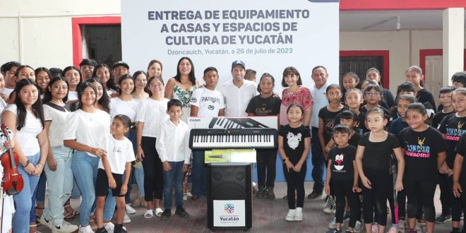 Ante la titular de la Secretaría de la Cultura y las Artes (Sedeculta), Loreto Villanueva Trujillo, Vila Dosal supervisó la operación del espacio cultural de esta demarcación, donde entregó un kit de equipamiento que consiste en un teclado, una bocina y dos micrófonos.