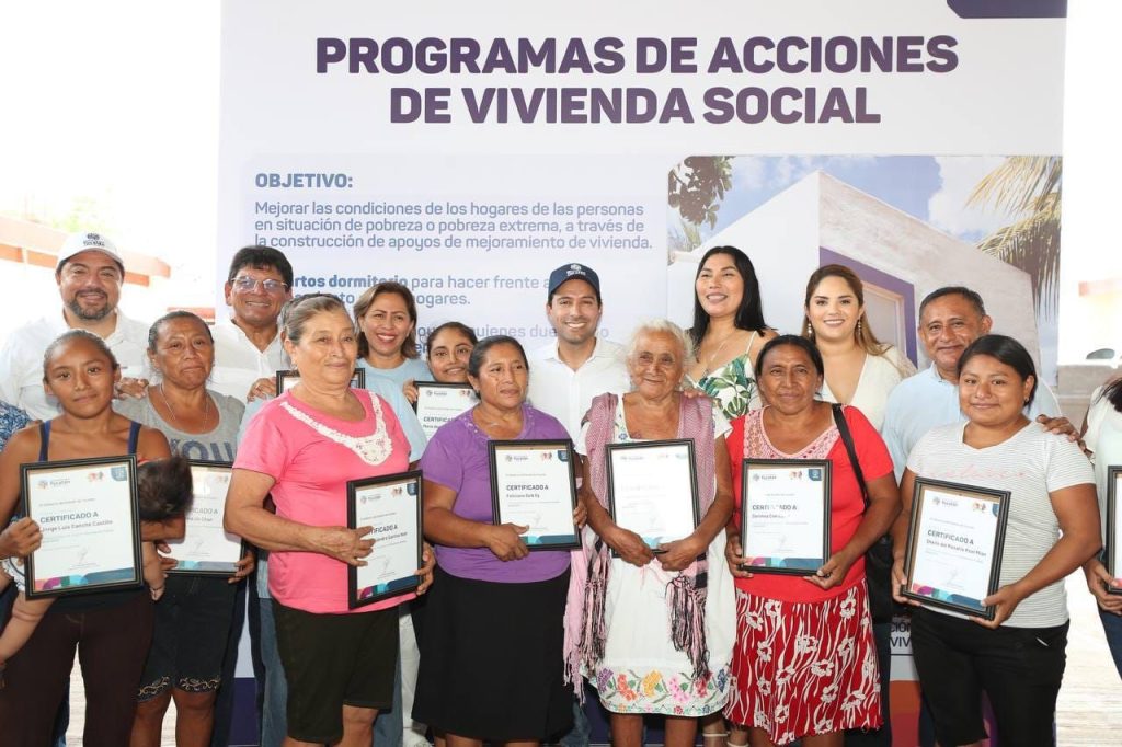 Acompañado del titular de la Secretaría de Desarrollo Social (Sedesol), Roger Torres Peniche, el Gobernador comenzó la distribución de 16 certificados para acciones de Vivienda Social, con el objetivo de reducir la condición de vulnerabilidad de las familias que más lo necesitan en la localidad.