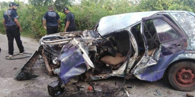 Se averiguó que Oswaldo Ek conducía ebrio y con exceso de velocidad el auto placas ZAC-43-12, invadió el carril contrario y chocó de frente contra un tráiler de Valladolid que recolecta carbón en las comisarías de la región.