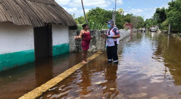 Luego, con el apoyo de la policía municipal los voluntarios visitaron Dzilam de Bravo donde las aguas de la ciénaga rebosaron por efectos de la tormenta tropical Cristóbal e inundaron las viviendas sin que las familias puedan contenerla, ya que está corre como un río porque lleva fuerza.