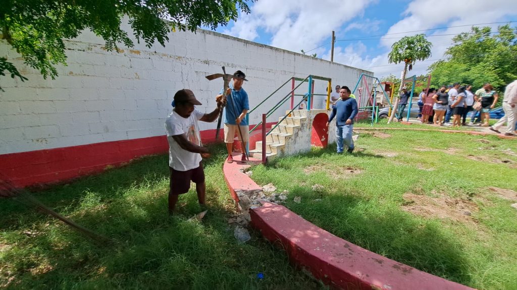 Acompañado de funcionarios del Ayuntamiento de Kanasín, Cabildo y vecinas y vecinos de Mulchechén I, el alcalde indicó que “hoy nuestro objetivo es que las niñas y niños del municipio cuenten con las mejores condiciones de infraestructura para que se puedan divertir, pero también para que las familias tengan un punto de reunión seguro y lleno de vida”.