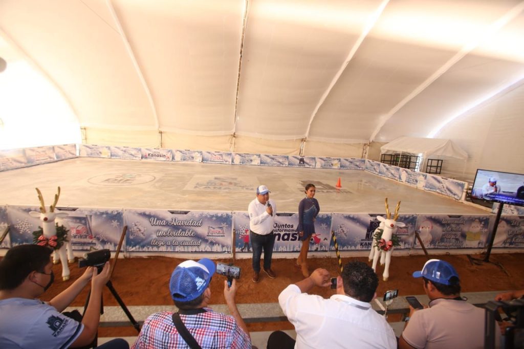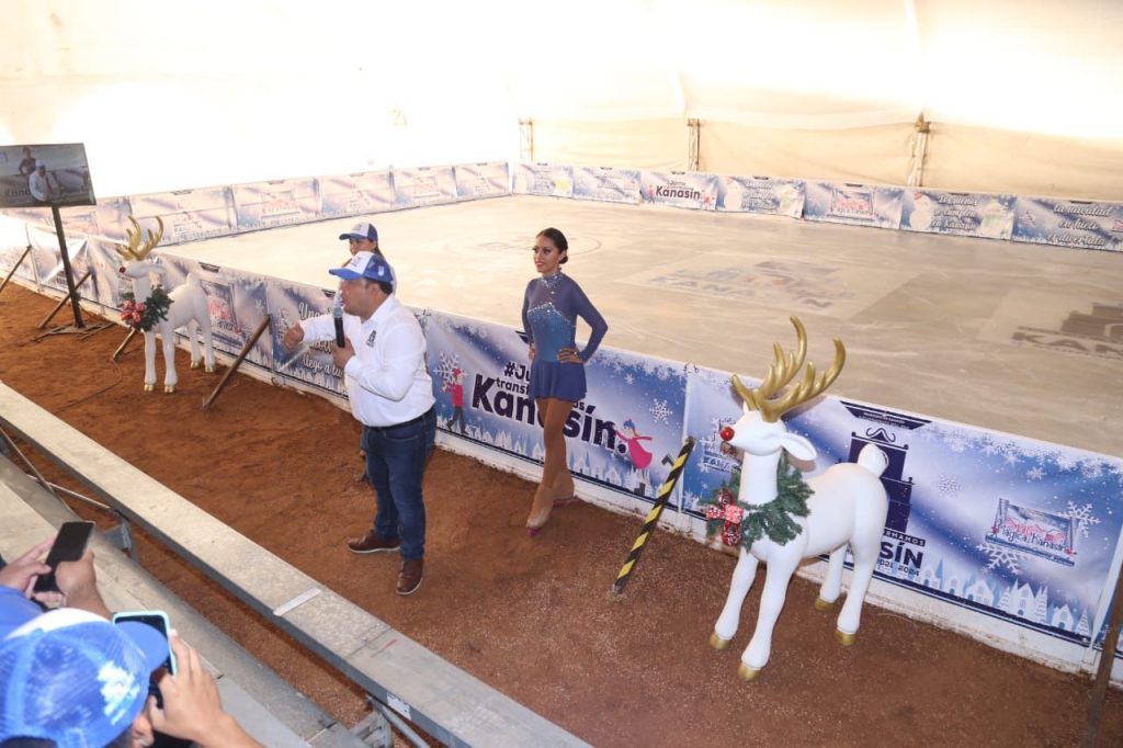 Kanasín, Yucatán a 5 de diciembre de 2022.- El alcalde Edwin Bojórquez Ramírez invitó a todas las familias de Kanasín a disfrutar de las actividades a realizarse en la Villa Navideña que se ha instalado en el parque de beisbol “Víctor Cervera Pacheco”, que inicia sus servicios este martes 6 de diciembre, y que incluye la puesta en funcionamiento de una pista de hielo para el disfrute no solo de niños y niñas sino también de personas adultas y de grupos vulnerables.