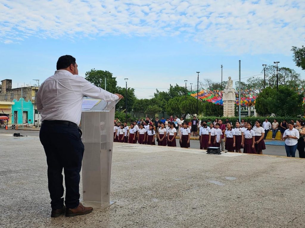 Kanasín, Yucatán a 20 de noviembre 2024.- Con la presencia de alumnos, padres de familia y ciudadanos de Kanasín, el alcalde Edwin Bojórquez Ramírez encabezó esta mañana los honores a la bandera por el CXIV aniversario del inicio de la Revolución Mexicana.
