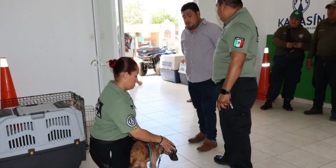 Edwin Bojórquez estuvo acompañado del comandante de la Policía Ecológica de Kanasín, Ricardo Varela Cruz, a quien le exhortó seguir trabajando a favor de la protección de los animales del municipio.