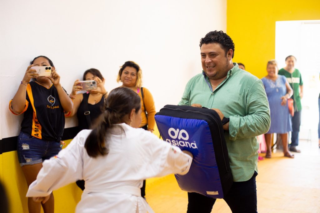Kanasín, Yucatán a 12 de octubre 2023.- El apoyo al deporte es uno de los pilares de esta administración y seguiremos impulsando las diversas disciplinas que permitan no solo poner en alto el nombre del municipio sino también fortalecer el tejido social, indicó Edwin Bojórquez Ramírez, al entregar material deportivo a una escuela de Tal Kwon Do que se ubica en la colonia Francisco Villa Oriente.
