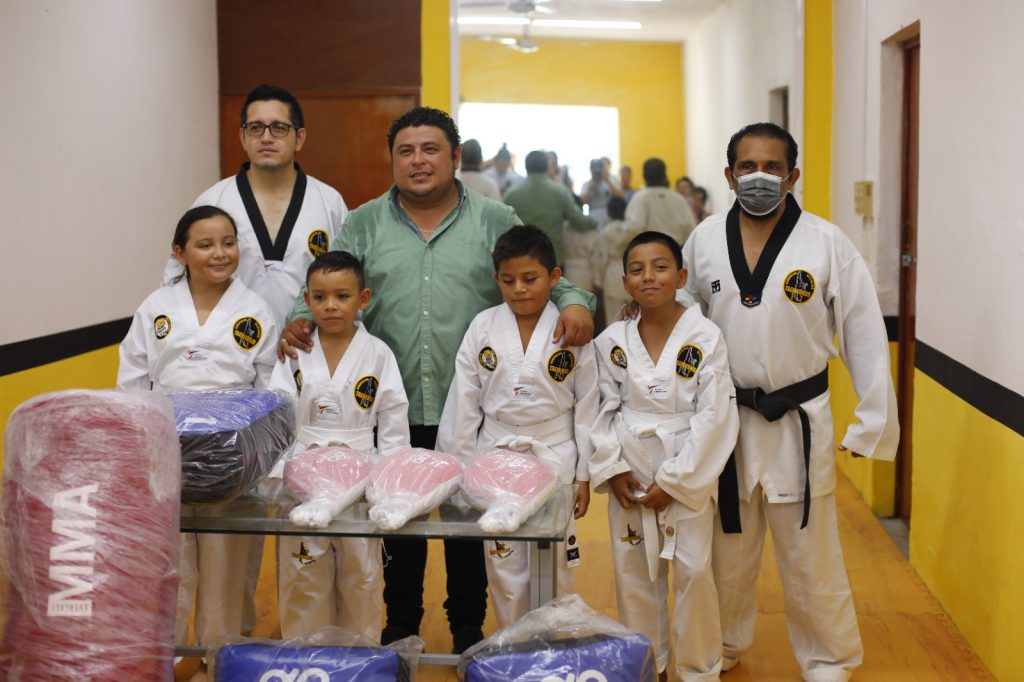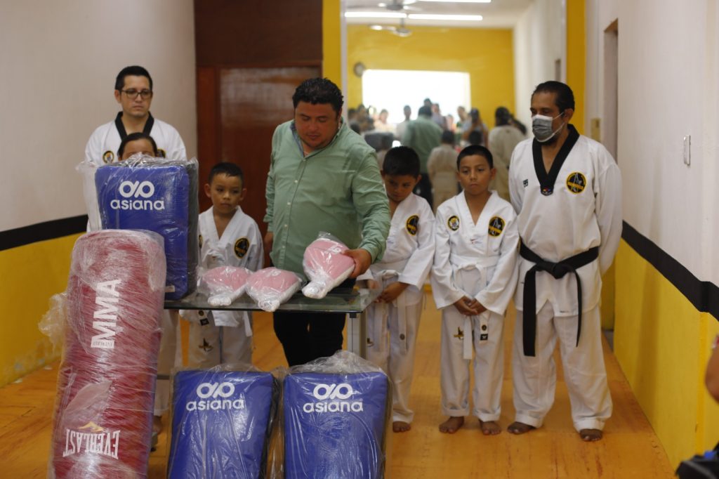Kanasín, Yucatán a 12 de octubre 2023.- El apoyo al deporte es uno de los pilares de esta administración y seguiremos impulsando las diversas disciplinas que permitan no solo poner en alto el nombre del municipio sino también fortalecer el tejido social, indicó Edwin Bojórquez Ramírez, al entregar material deportivo a una escuela de Tal Kwon Do que se ubica en la colonia Francisco Villa Oriente.