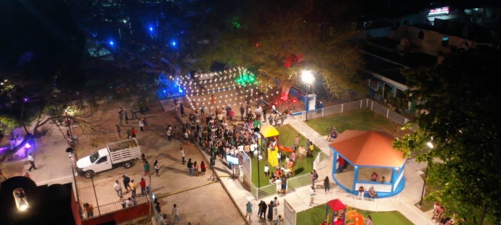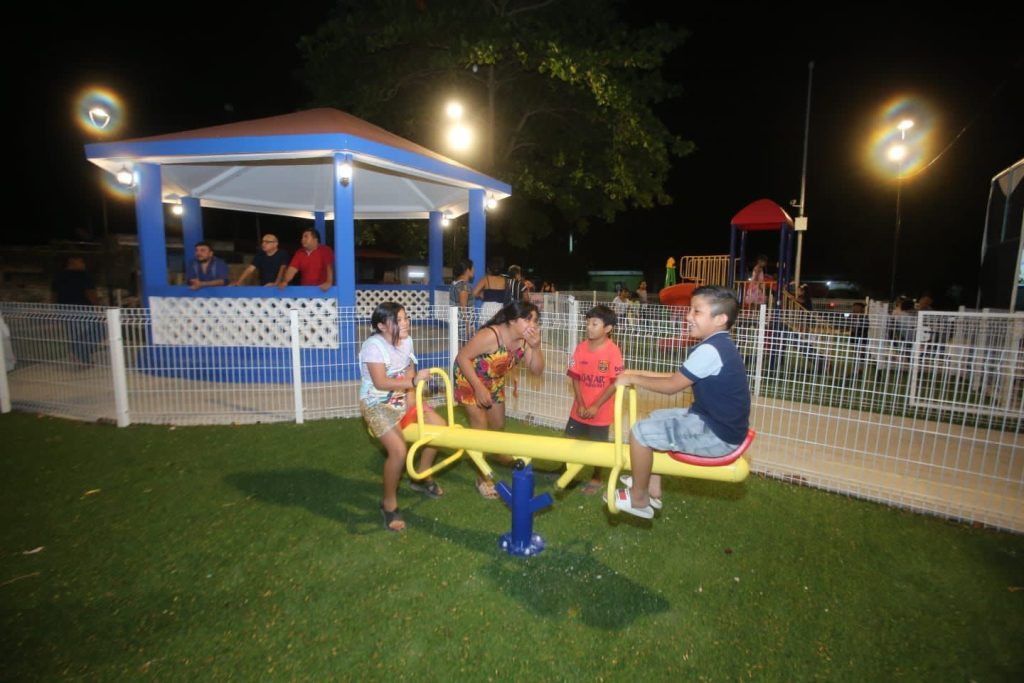Kanasin, Yucatán a 27 de abril de 2023.- Buscando generar mayores espacios de esparcimiento y entretenimiento para las familias de Kanasín, la noche de ayer miércoles se entregaron los trabajos de mejoramiento del parque principal en la comisaría de San Pedro Noh Pat, con una inversión de $998,000 y en beneficio de poco más de 5,000 personas de la zona.