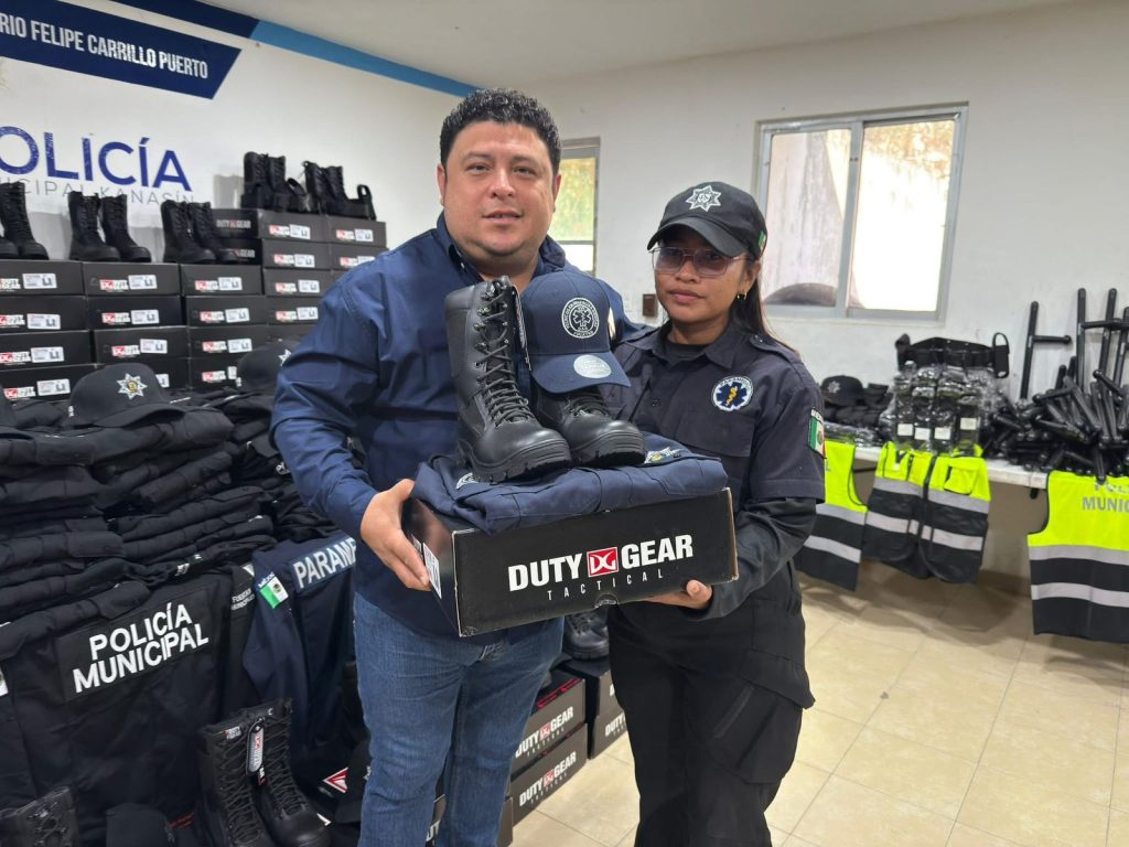 KANASÍN, Yuc., 13 de mayo 2025.- Con el objetivo de fortalecer la labor de la Policía Municipal de Kanasín a favor de la población del municipio, la mañana de este martes el alcalde Edwin Bojórquez Ramírez entregó uniformes y equipo táctico a elementos de la corporación.
