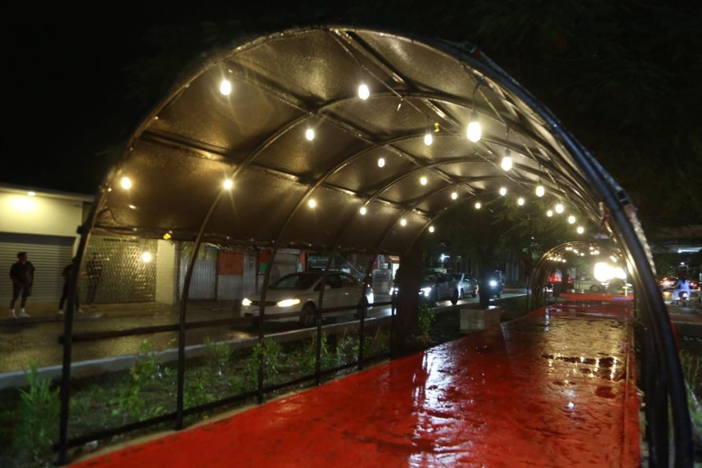 Tras prender la luz y develar la placa con el escudo de armas del municipio, Edwin Bojórquez, acompañado de los ciudadanos, recorrió los más de dos kilómetros de la avenida explicando cada detalle que presentó la obra, entre los cuales están las rampas que se instalaron para las personas con discapacidad, así como también las bancas que ahora adornan la avenida.