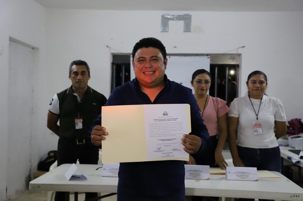 Edwin Bojórquez recibió de manos del Consejo Municipal Electoral el documento que lo acredita como el próximo alcalde electo, en un proceso en el que la diferencia de votos con el segundo lugar fue amplia. En el cómputo final, Edwin Bojórquez obtuvo un total de 23,848 votos, mientras que el segundo lugar 15,562, una diferencia de 8,286 votos, casi 20 puntos porcentuales de diferencia.