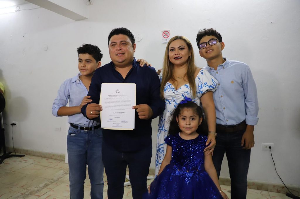 Edwin Bojórquez estuvo acompañado por los integrantes de su planilla, quienes también recibieron sus constancias de mayoría, así como de su esposa Raquel Balam Rocha de Bojórquez e hijos Edwin, Ricardo y Jimena.