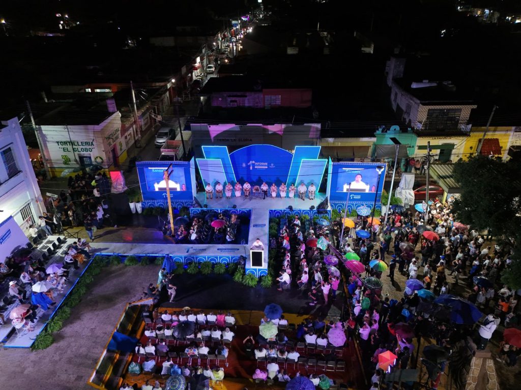 KANASÍN, Yuc., 30 de agosto 2025.- Ante cientos de familias de Kanasín, y a pesar de una pertinaz lluvia, el alcalde Edwin Bojórquez Ramírez presentó la noche de ayer viernes su Primer Informe de Resultados del periodo 2024-2027, destacando que su administración trabaja para que “nuestros niños y jóvenes alcancen sus sueños y aspiraciones; para que Kanasín siga progresando, pero sobre todo para fortalecer el núcleo base de este municipio que es la familia”.