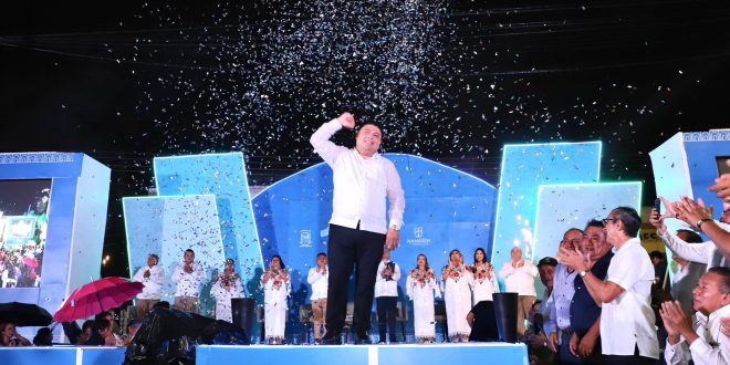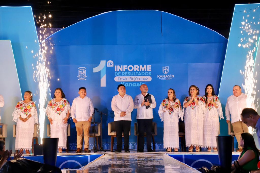 KANASÍN, Yuc., 30 de agosto 2025.- Ante cientos de familias de Kanasín, y a pesar de una pertinaz lluvia, el alcalde Edwin Bojórquez Ramírez presentó la noche de ayer viernes su Primer Informe de Resultados del periodo 2024-2027, destacando que su administración trabaja para que “nuestros niños y jóvenes alcancen sus sueños y aspiraciones; para que Kanasín siga progresando, pero sobre todo para fortalecer el núcleo base de este municipio que es la familia”.