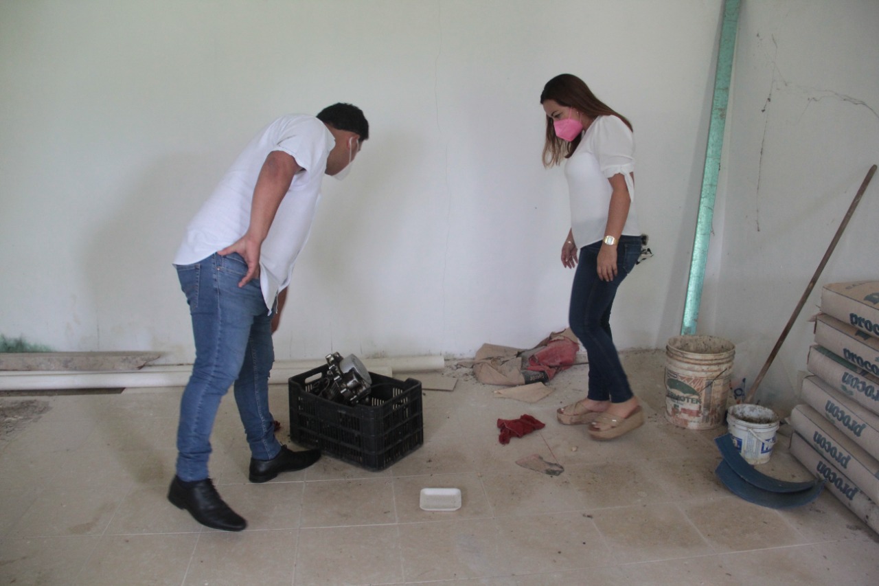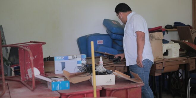 El inmobiliario también se encuentra dañado e incompleto, además de que las puertas, ventanas, pisos y sillas están destrozadas.