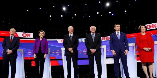 Los dos más progresistas, los senadores Bernie Sanders y Elizabeth Warren, prometieron que darán un giro de 360 grados al país nada más llegar a la Casa Blanca; mientras que el exvicepresidente Joe Biden, la senadora Amy Klobuchar y el alcalde Pete Buttigieg se mostraron más moderados.