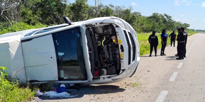 Tetiz, Yuc., 21 de septiembre 2021.- Quién iba a imaginar que una segunda dosis de la vacuna contra el Covid-19, iba a hacer efecto en una guiadora que se dirigía a Kinchil, a bordo de una camioneta camioneta la empresa Pepsi, pues terminó volcando este lunes en la carretera Mérida-Tetiz, al dormitar unos segundos.
