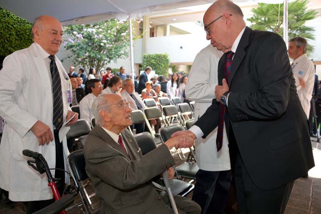 En la ceremonia también estuvo el Titular de la Comisión Coordinadora de los Institutos Nacionales de Salud y Hospitales de Alta Especialidad (CCINSHAE), doctor Guillermo Ruiz Palacios y Santos, y el Rector de la Universidad Nacional Autónoma de México, Enrique Graue Wiechers, así como los directores de Cirugía, doctor Miguel Ángel Mercado Díaz, de investigación, doctor Gerardo Gamba Ayala, y de enseñanza de este instituto, doctor Sergio Ponce de León Rosales.