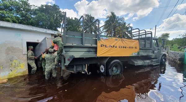 Valladolid, Yucatán a 11 de junio de 2020.- La Secretaría de la Defensa Nacional, a través de la X Región Militar y la 32/a. Zona Militar, informan a la población en general que después de las afectaciones que provocó la Tormenta Tropical Cristóbal a su paso por el estado de Yucatán, elementos del Ejército y Fuerza Aérea Mexicanos, aplican de manera ininterrumpida el Plan DN-III-E en sus Fases de “Auxilio y Recuperación”.