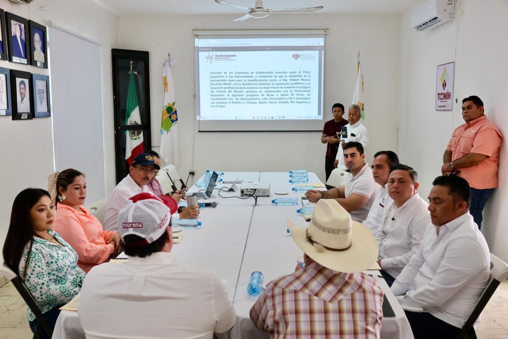 Tizimín, Yuc., 058 de febrero 2025.- En reunión con presidentes municipales del Distrito 17 el diputado Wilmer Monforte Marfil, diputado del distrito, presentó el programa “Alianza por la Educación” que beneficiará a los jóvenes de la región, impulsando su acceso a la Educación Superior.