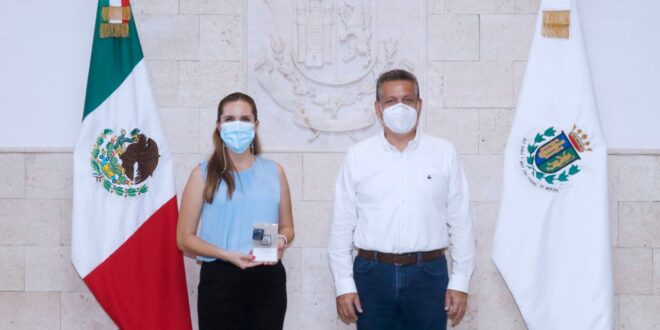 Mérida, 29 de junio de 2021. El alcalde Alejandro Ruz Castro recibió esta tarde la visita de la alcaldesa electa de Isla Mujeres en Quintana Roo, Atenea Gómez Ricalde, con quien intercambió puntos de vista en diferentes temas, así como la visión que tiene la administración municipal para seguir fortaleciendo a Mérida como ejemplo de buenas prácticas a nivel nacional.