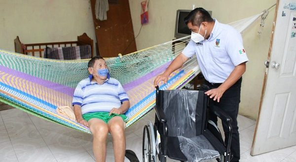 UMÁN, Yuc., 24 de agosto 2020.- La prioridad del alcalde Freddy Ruz Guzmán siempre ha sido el de cuidar a los adultos mayores, en especial en estos tiempos que vivimos por el COVID-19, por ese motivo, acudió a la comisaría de Xtepén para visitar hasta en su domicilio a Don Hermenegildo Dzib, a quien le entregó una silla de ruedas para que pueda realizar sus actividades cotidianas con mayor facilidad.