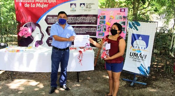 UMÁN, Yuc., 21 de septiembre 2020.- Aplicando las debidas medidas para prevenir contagios de COVID-19, el alcalde Freddy Ruz Guzmán realizó la entrega de reconocimientos y kits de materiales a las participantes de la comisaría de Xtepén en el programa “Avanzando Juntas” que se implementó a través del Instituto Municipal de la Mujer.