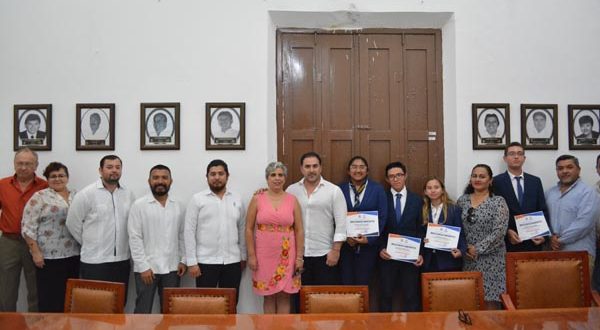 En la Sala de Presidentes del palacio municipal, Zacarías Curi, felicitó a Mayté de la Cruz Balam Caamal, del séptimo semestre de Ingeniería Logística; Roger Benjamín Brito Pech, del quinto semestre de Administración y de la Ingeniería en Gestión Empresarial, Genoveva Santana Basto y Guillermo Castillo Addiego, del quinto y tercer semestre, respectivamente.