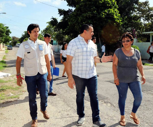 Acompañado del director de Bienestar Social, Jorge Gamboa Wong, el Concejal inició su jornada laboral visitando algunos hogares de esta colonia ubicada al sur de la ciudad, para pedir personalmente a los vecinos se sumen a estas acciones que lleva a cabo el Ayuntamiento con el objetivo de combatir la proliferación del mosco Aedes Aegipty, transmisor de enfermedades como dengue, chikungunya y zika.