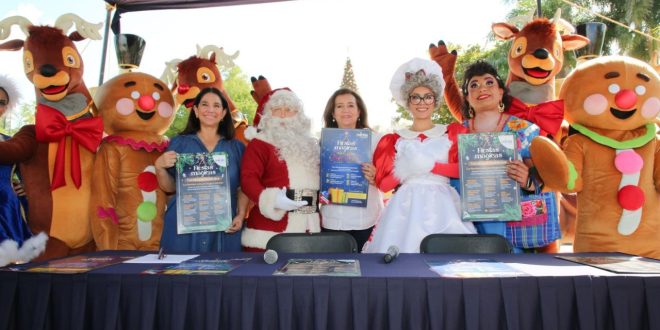 En rueda de prensa celebrada en el Parque de las Américas, las directoras Silvia Sarti González, del DIF Municipal, y María José Cáceres Delgado, de Desarrollo Social, informaron los detalles de las Caravanas y Show navideños que prepara este año el Ayuntamiento para que más familias disfruten de actividades totalmente gratuitas.