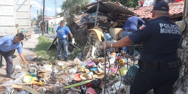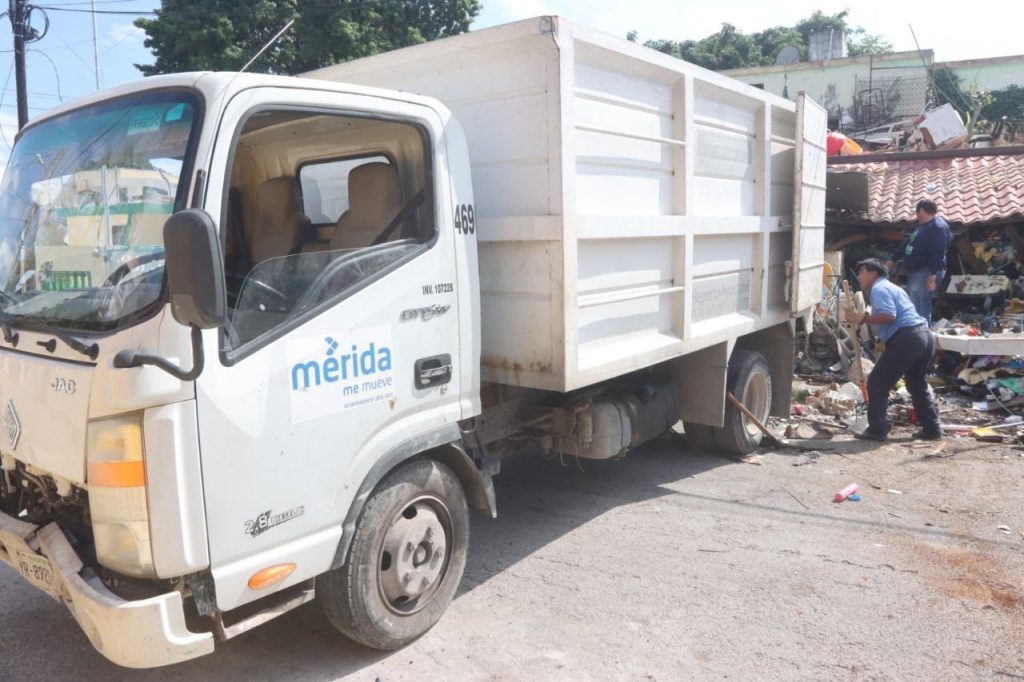 Mérida, Yucatán a viernes 16 de enero de 2025.- En respuesta a un reporte ciudadano por acumulación de basura, por indicaciones de la Alcaldesa Cecilia Patrón Laviada, personal del Ayuntamiento de Mérida acudió al predio calle 33 por 48 de la colonia Pacabtún.