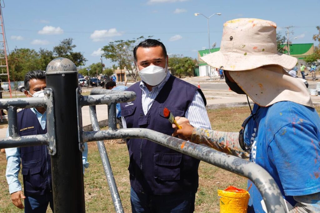 Renán Barrera supervisa la rehabilitación integral del parque y avenida 77 del fraccionamiento Tixcacal Opichén