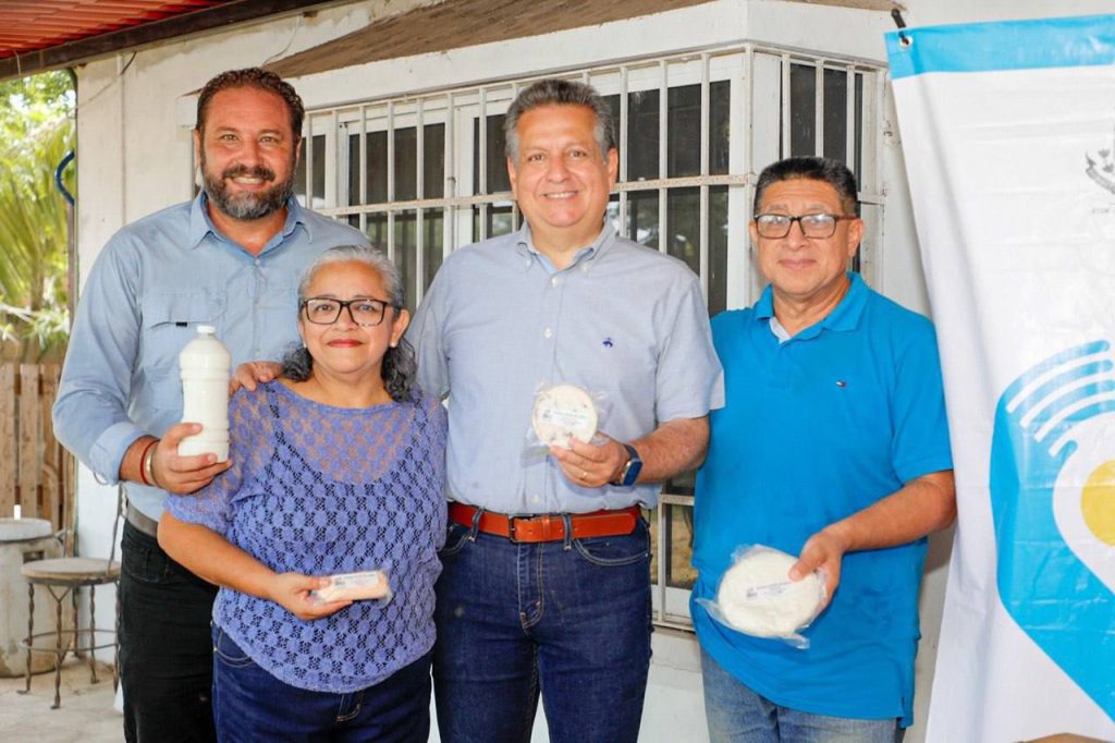 Acompañado del director de Desarrollo Económico y Turismo, José Luis Martínez Semerena, y de los propietarios de la granja, Pedro Chay Vela y su esposa Laura Rodríguez Juárez, el Alcalde atestiguó el procedimiento y elaboración de productos como queso y leche de cabra, yogurt, postres, miel y cajeta.