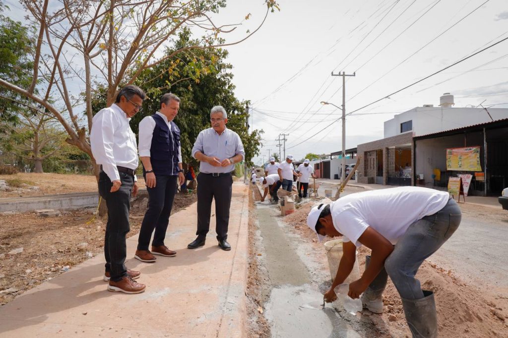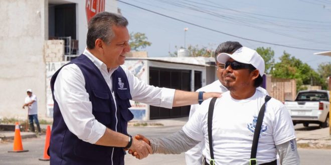 El Alcalde Alejandro Ruz Castro supervisa trabajos en el fraccionamiento Tixcacal Opichén.