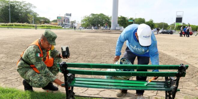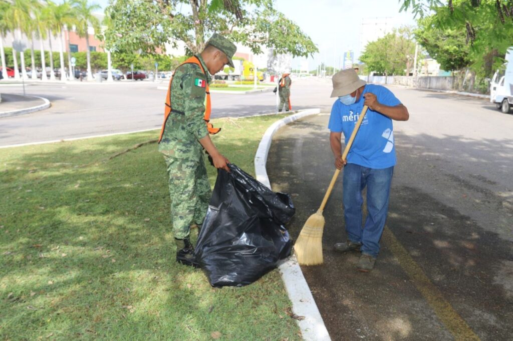 El Ayuntamiento de Mérida y la SEDENA trabajan juntos en la limpieza y mantenimiento de la ciudad