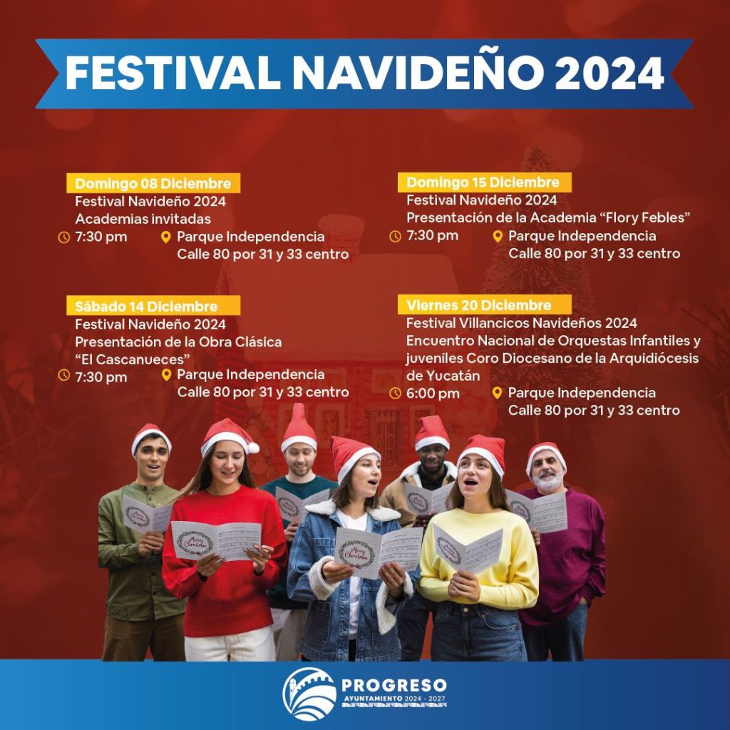 Aunado a estos eventos, durante la semana del lunes 8 al 20 de diciembre, el Ayuntamiento continuará con su cartelera de actividades artísticas que incluyen la presentación de la obra clásica “El Cascanueces” y el Festival de Villancicos con el Encuentro Nacional de Orquestas Infantiles y Juveniles del Coro Diocesano de la Arquidiócesis de Yucatán.