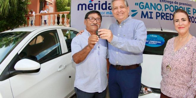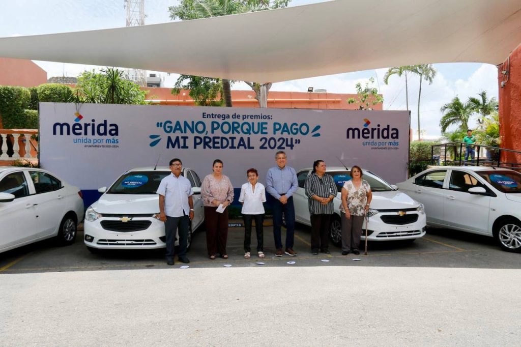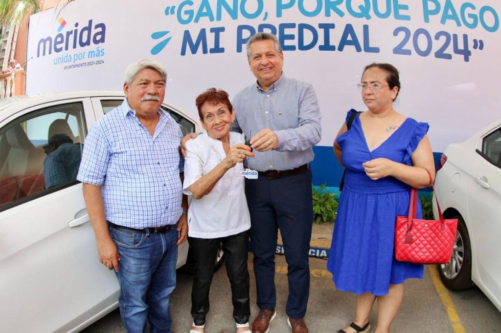 En el sorteo “Gano, porque pago mi predial 2024”, el Presidente Municipal entregó cuatro automóviles a las y los ganadores: “esto es una forma de decirles gracias a todas y todos los meridanos que cumplen a tiempo con sus responsabilidades ciudadanas y con Mérida, y que hacen posible que crezcamos parejo, con mejores obras y servicios en todo el municipio que elevan el bienestar y la calidad de vida”.