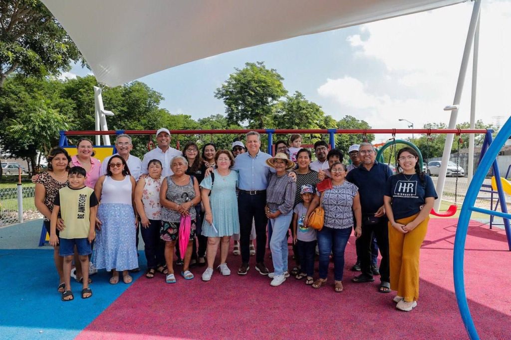 El parque “Vecinitos”, ubicado en la calle 70 entre 39-A y 74-A del fraccionamiento Ciudad Caucel, tiene un 90% de avance y es un ejemplo de la inversión en espacios públicos que fomentan el tejido social y la convivencia vecinal.