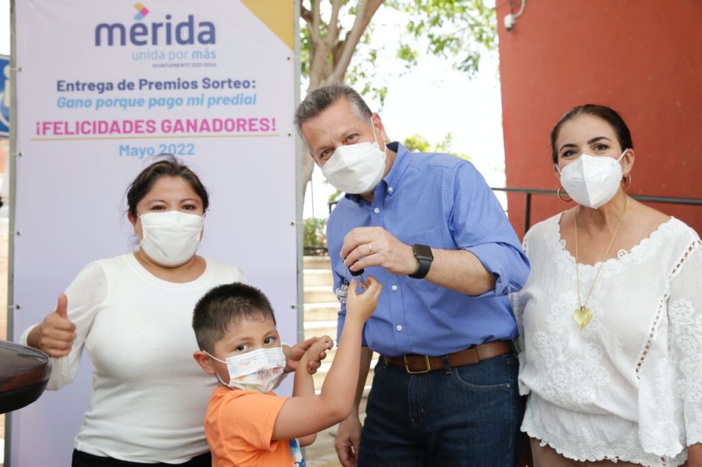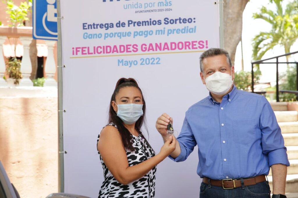 Mérida, 20 de mayo de 2022.- Si algo distingue muy bien a las y los meridanos es el compromiso y la responsabilidad que demuestran para cumplir con su ciudad y eso se agradece y se reconoce desde el gobierno municipal, porque si de algo estamos seguros, es que, al cumplir con sus obligaciones fiscales, nos ayudan a construir un mejor futuro para todas y todos los habitantes del Municipio, afirmó el Secretario de la Comuna, Alejandro Ruz Castro, en representación del Presidente Municipal, Renán Barrera Concha, durante la entrega de los cuatro vehículos último modelo a los ganadores del sorteo “Gano porque pago mi Predial 2022”.
