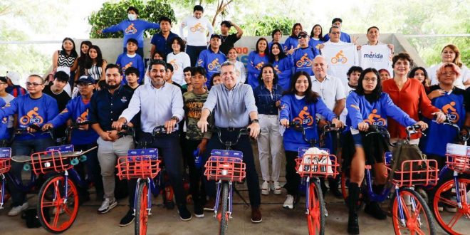 Al entregar 200 nuevas bicicletas para hacer un total de 600 unidades que estarán a disposición de las y los ciudadanos que usan este medio de transporte para trasladarse de un punto a otro, el presidente municipal dijo que Mérida sigue consolidándose como una ciudad sustentable, en la que junto con el gobierno del Estado se trabaja en equipo para ofrecer a la ciudadanía una movilidad inclusiva, sustentable y amigable con el medio ambiente.