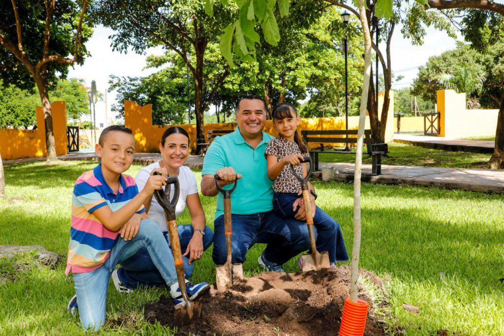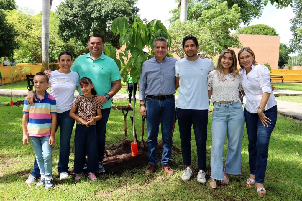 En el marco de la clausura de la Cruzada Forestal 2024, el Presidente Municipal estuvo acompañado de su esposa y presidenta del DIF, Verónica Cetina Arjona, de sus hijos Mariana y Alejandro, y el Alcalde con licencia Renán Barrera Concha, su esposa Diana Castillo Laviada y sus hijos Renán y Daniela, así como Alejandra Bolio Rojas, directora de la Unidad de Desarrollo Sustentable.