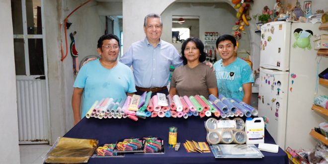 En ese marco, el Presidente Municipal acudió a la colonia Nueva San José Tecoh, donde visitó la casa de la señora Elda del Rosario Canché Puc, quien desde hace 35 años se dedica a la elaboración de piñatas, para entregarle nuevos insumos del programa de apoyos directos para el autoempleo, que le permitirá dinamizar su proyecto económico.