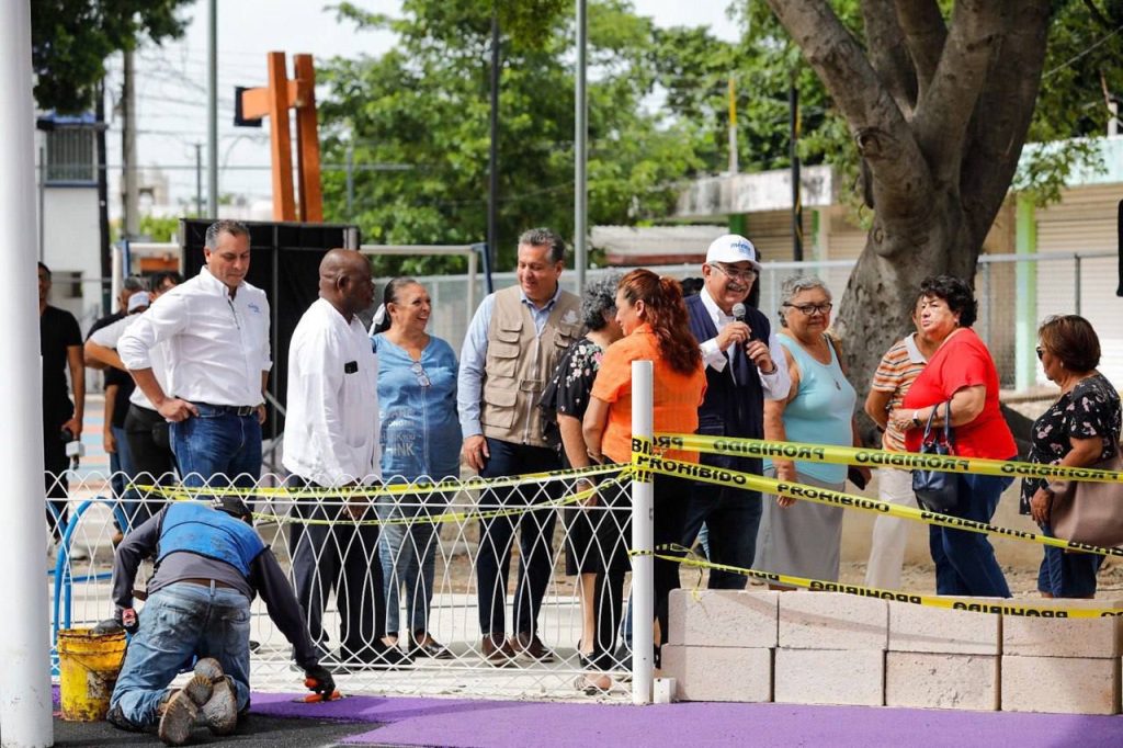 “Hoy iniciamos los recorridos por los proyectos ganadores para constatar el importante avance que presentan, como los parques de la Alemán, Francisco de Montejo y en la comisaría de Cholul, donde las y los vecinos se han entusiasmado con sus espacios públicos y están al pendiente del proceso en coordinación con el Ayuntamiento”, destacó.