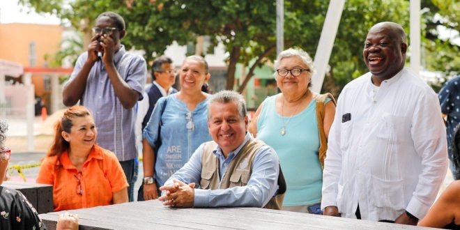 Acompañado por el Presbítero Egibe Misasi Mubiala, de la Parroquia San Martín Caballero y de las vecinas y vecinos de la colonia, el Presidente Municipal recorrió las zonas en rehabilitación del proyecto “Nuestro parque Yucalpetén”, que resultó seleccionado mediante la gran consulta ciudadana “Diseña tu Ciudad”.