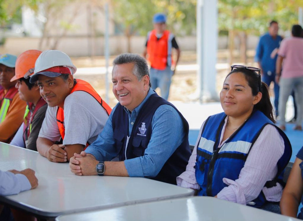 El Alcalde Alejandro Ruz Castro desayuna con alarifes que trabajan en la remodelación del parque “Los Cantaritos”, en Francisco de Montejo.