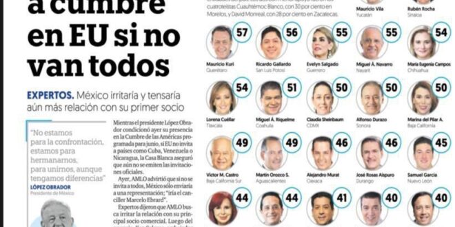 La encuesta se hizo vía telefónica en los 32 estados del país y en ella colocan al Gobernador Vila Dosal a la cabeza con 62 puntos, seguido del gobernador de Sinaloa, Rubén Rocha, con 61 puntos.