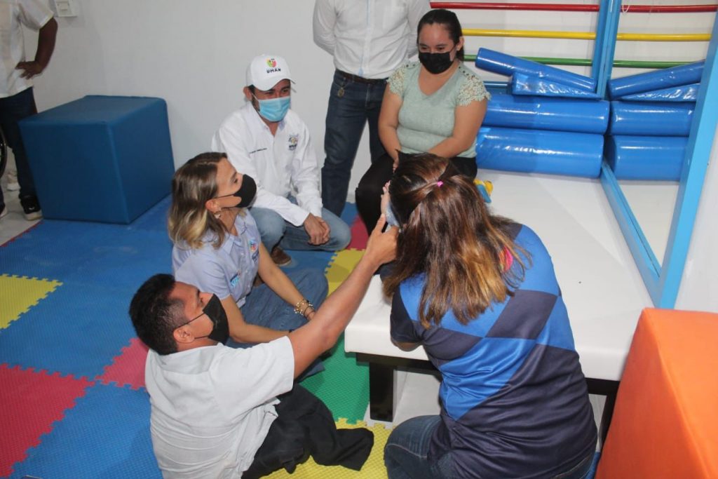 UMÁN, Yuc., 24 de agosto 2022.-Impulsando acciones que contribuyan al desarrollo integral de los ciudadanos, autoridades municipales y estatales realizaron el corte del listón inaugural de la entrega de los trabajos de remodelación de la Unidad Básica de Rehabilitación (UBR) en la ciudad Umán.