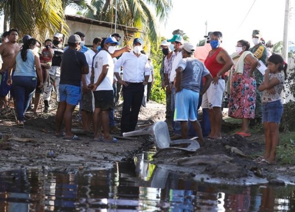 En su visita a este puerto yucateco del oriente del estado, el Gobernador se comprometió a que hoy mismo llegaría una excavadora para la limpieza del acceso al puerto de abrigo y para mañana temprano se van a enviar 2 pipas de agua potable, al tiempo que se instalará una cocina comunitaria, con apoyo del DIF estatal y en coordinación con el Ayuntamiento de Tizimín, para dar raciones de comida a las personas que así lo necesiten y se distribuirán 800 despensas para las familias que lo requieran.