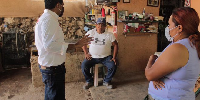 Valladolid Yucatán, 14 de abril del 2021.- Acompañado de vecinos de la colonia Fernando Novelo, el candidato a la alcaldía de Valladolid por el Partido Movimiento de Regeneración Nacional (Morena), Homero Novelo Burgos, reafirmó su compromiso de impulsar acciones en beneficio de todas y todos los ciudadanos.
