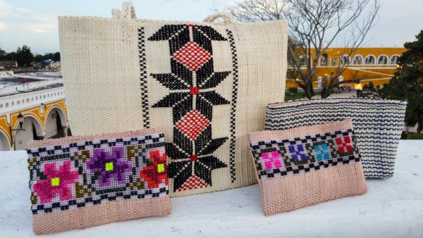María de la Luz, dijo que empezó a buscar nuevas ideas y tendencias al realizar su trabajo artesanal, ya que en sus inicios bordaba con listón sus bolsas de henequén rústico, pero llegó el momento que escaseo y empezó a comprar telares, así que concluyó que tenía que poner algo más, no solamente una bolsa hecha de algo tan significativo como es el henequén en Yucatán, sino más bien quería plasmar algo propio, y es cuando empieza a bordar las bolsas con punto de cruz hechas a mano con diseños propios.