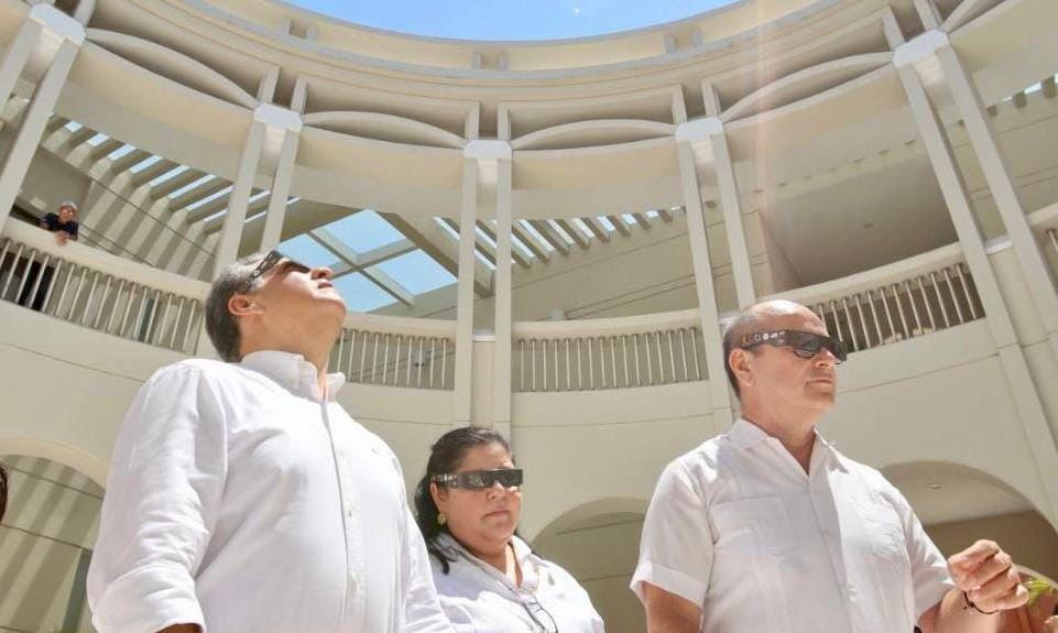 El Alcalde Alejandro Ruz Castro presenció este fenómeno astronómico en el Patio Central del Centro Cultural de Mérida “Olimpo”, que fue la sede oficial, junto con otros dos observatorios ubicados en El Gran Museo de la Cultura Maya e Izamal.